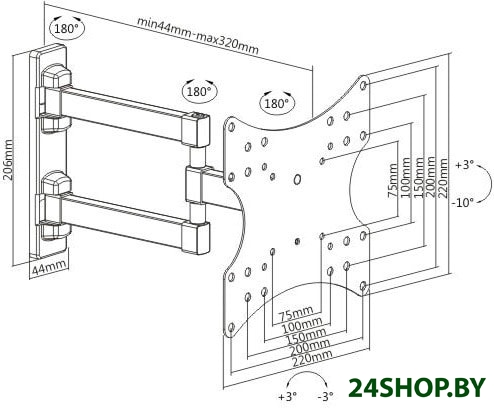 - Совместимость с креплением VESA: 75x75, 100x100, 150x150, 200x200