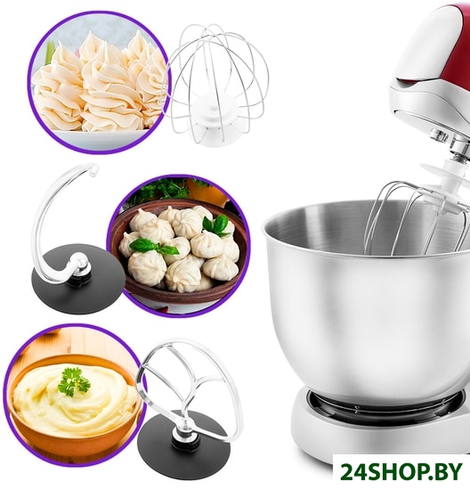 - Функции: мясорубка, взбивание, смешивание, замешивание дрожжевого теста