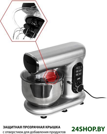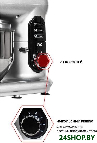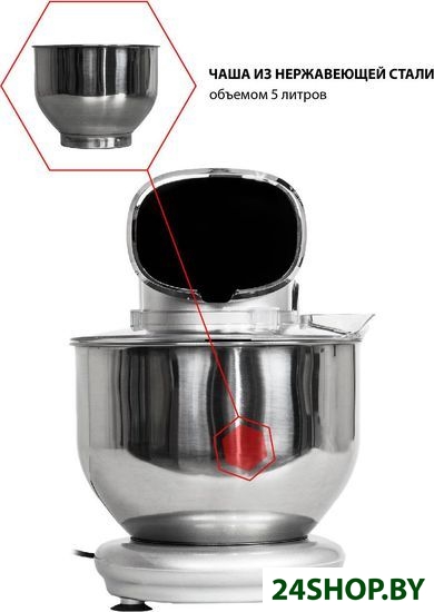 - Полная комплектация: миксер, венчик для взбивания, лопатка для перемешивания, крючок для замеса теста, лопатка, гарантийный талон, инструкция на русском языке