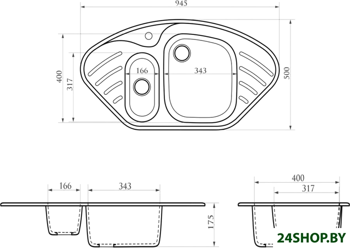 - Глубина мойки: 40 см