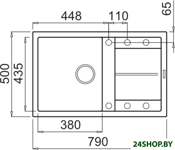 - Ширина мойки: 79 см