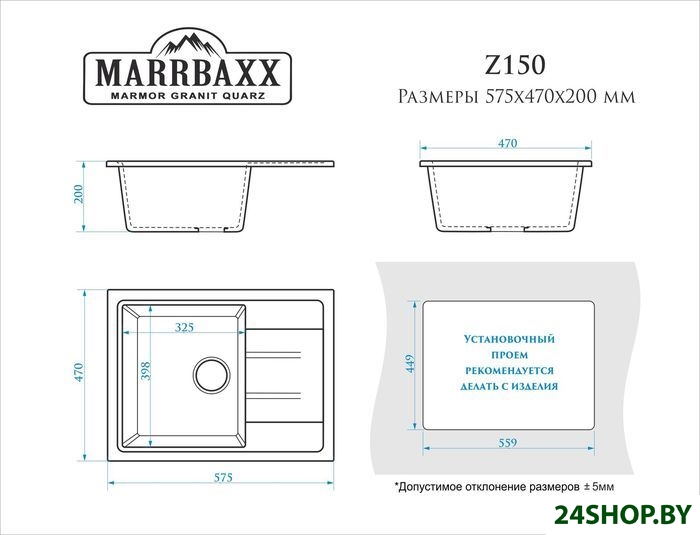- Ширина мойки: 57.5 см