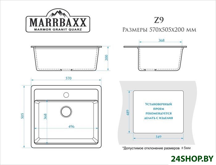 - Глубина мойки: 50.5 см