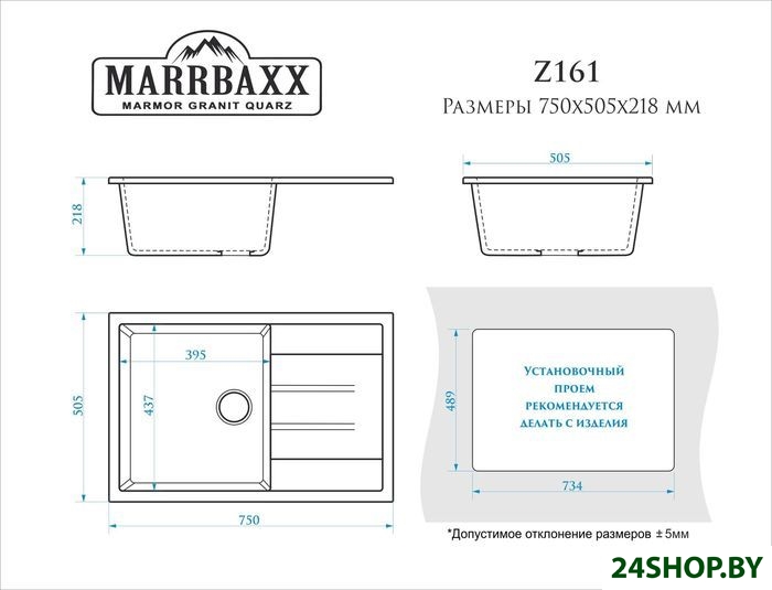 - Ширина мойки: 75 см