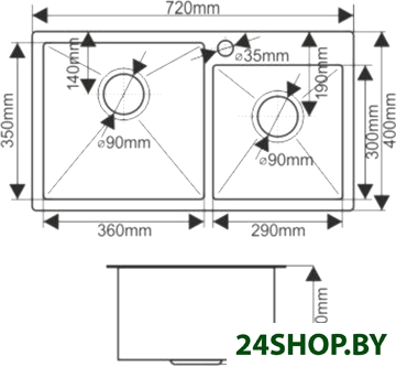 - Ширина мойки: 72 см