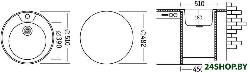 - Ширина мойки: 51 см
