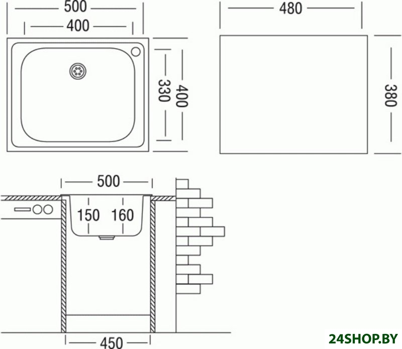 - Ширина мойки: 50 см