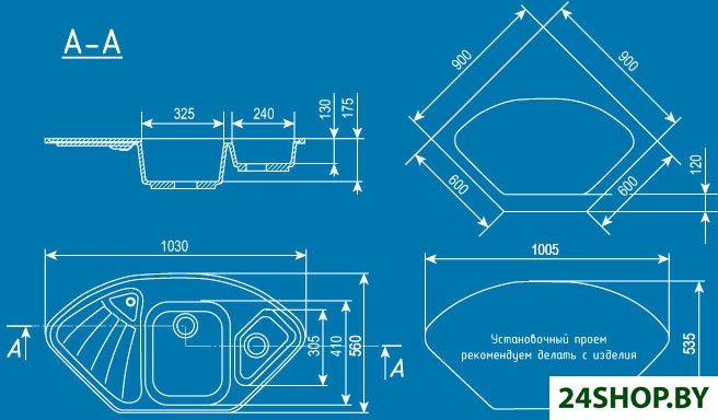 - Форма: угловая