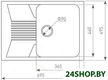 - Глубина мойки: 49 см