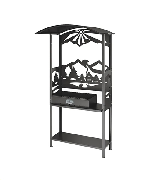- Комплект поставки: Мангал на подставке, столик, полка для дров, крыша, кронштейн для кочерги и совка