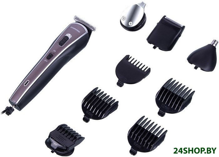- Насадки: гребни, микротриммер, для носа и ушей, бритва