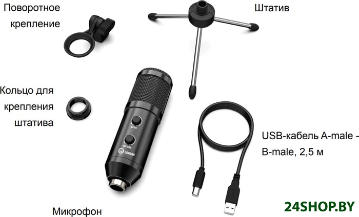 - Комплект поставки: - настольная подставка (трипод)- держатель для микрофона- крепежное кольцо- кабель USB Type-B - USB Type-A- документация