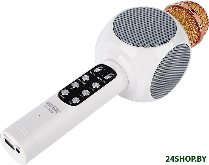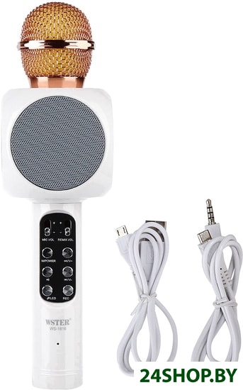 - Комплект поставки: - Колонка-Микрофон Wster WS-1816- кабель USB/microUSB- Аудио кабель AUX 3.5mm- Руководство пользователя- Упаковка/коробка