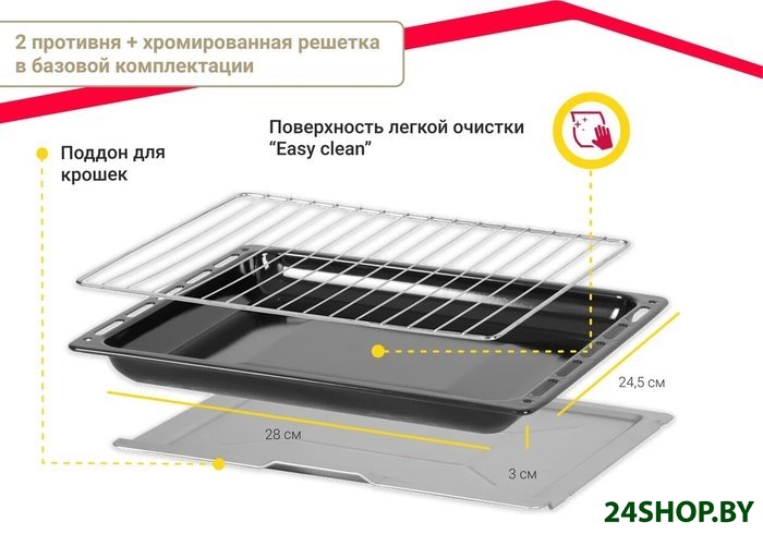 - Стандартный противень: 1 (эмалированный)