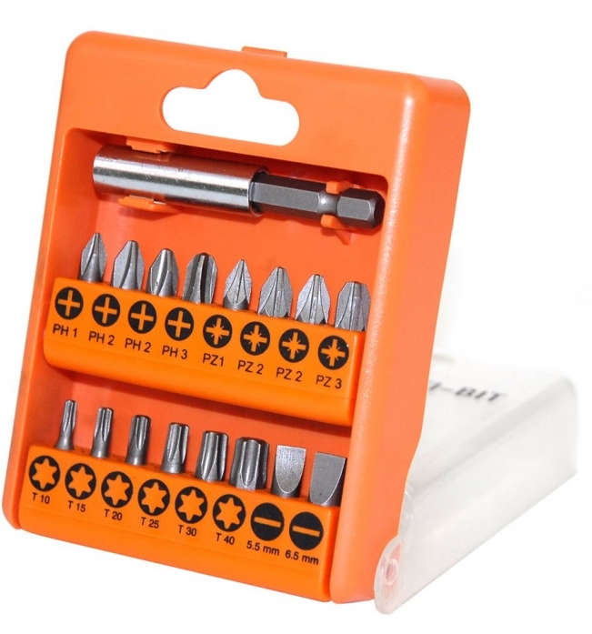 - Биты (насадки-отвертки): 16 (Torx, Phillips, Pozidriv)