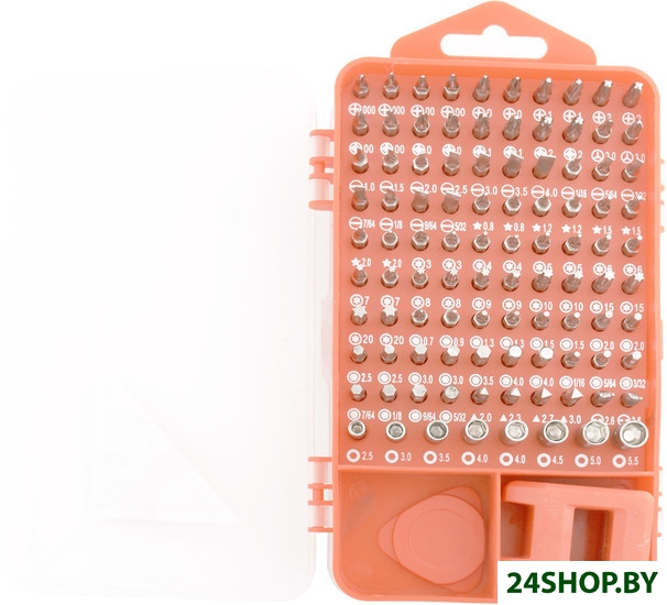 - Комплектация: 1x рукоятка1x удлиннитель1x короткая вставка1x пинцет1x магнит1x присоска2x пластиковая плоская отвертка1x игла1x треугольный инструмент8x гаечные головки: M2.5, M3, M4, M4.5, M5, M5.590x биты для мини-отвертки:Phillips: PH000, PH00, PH0, PH1, PH2 (2 шт. каждой)Pozi: PZ00, PZ0, PZ1, PZ2 (2 шт. каждой)Плоские: 1.0, 1.5, 2.0, 2.5, 3.0, 3.5, 4.0Плоские: 1/16, 5/64, 3/32, 7/64, 1/8, 9/64, 5/32Звезда: 0.8, 1.2, 1.5, 2.0 (2 шт. каждой)Торкс: T3, T4, T5, T6, T7, T8, T9, T10, T15, T20 (2 шт. каждой)Шестигранник: 0.7 (1x), 0.9 (1x), 1.3, 1.5, 2.0, 2.5, 3.0, 3.5(1x), 4.0 (2 шт. каждой)Шестигранник: 1/16, 5/64, 3/32, 7/64, 1/8, 9/64, 5/32Треугольник: 2.0, 2.3, 2.7, 3.0H-форма: 2.6 (2x)Y-форма: 2.0, 3.0