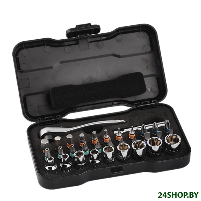- Биты (насадки-отвертки): 21 (Hex, Torx, Phillips, Slotted)