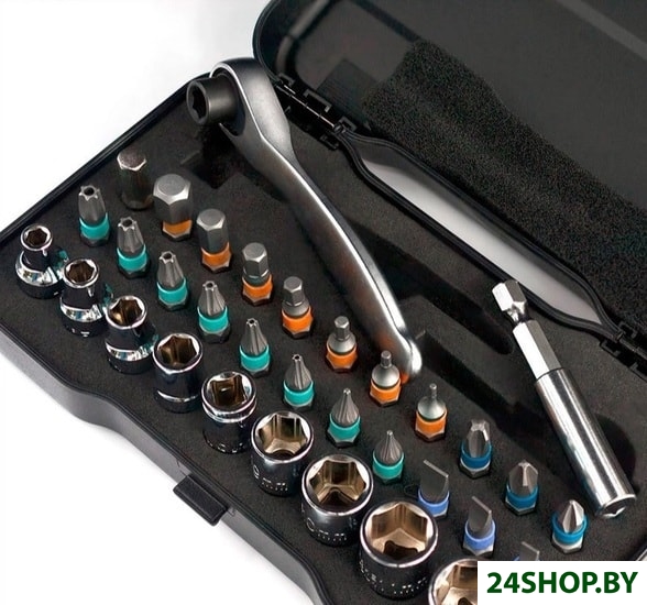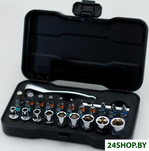 - Комплектация: — вороток с трещоткой— удлинитель— головки (4, 5, 6, 7, 8, 9, 10, 11, 12мм)— биты:• SL6, SL5, SL4• PH6.5, PH6, PH5,• T30, T25, Т20, Т15, Т10, Т9, Т8, Т6 • H8, H6.35, H5, H4, H3, H2, H1.5