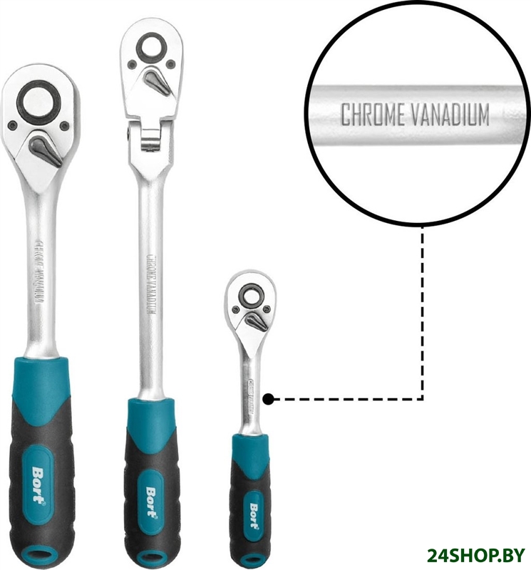 - Трещотка: 3 (1/2", 3/8", 1/4")