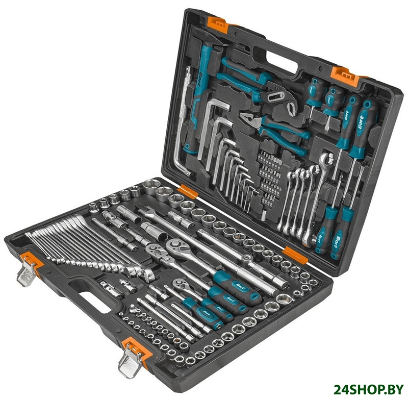 - Комплектация: Биты 25 мм (26 шт) Головки 1/4" (9 шт) Головки 1/2" Е-профиль (5 шт) Рукоятка с трещеткой квадрат 1/4 (1 шт) Рукоятка для головок (1 шт) Удлинитель 1/4":50 мм (1 шт) Удлинитель 1/4":100 мм (1 шт) Удлинитель 1/4":150мм (1 шт) Гибкий удлинитель (1 шт) Шарнир карданный 1/4 (1 шт) Головки 3/8" (15 шт) Рукоятка с трещеткой квадрат 3/8 (1 шт) Удлинитель 3/8 75 мм (1 шт) Удлинитель 3/8 250 мм (1 шт) Шарнир карданный 3/8” (1 шт) Головки 1/2" (19 шт) Головки 1/2" Е-профиль (5 шт) Головка торцевая свечная, 1/2" (2 шт) Шарнирный кардан 1/2" (1 шт) Вороток Г-образный 1/2" 250 мм (1 шт) Вороток шарнирный 1/2 430 мм (1 шт) Удлинитель 1/2":75 мм (1 шт) Удлинитель 1/2":150 мм (1 шт) Рукоятка с трещеткой квадрат 1/2 (1 шт) Переходник 3/8"–1/2" (1 шт) Переходник 3/8"–1/4" (1 шт) Держатель для бит (1 шт) Ключ имбусовый (10 шт) Ключ накидной (5 шт) Ключ комбинированный (17 шт) Отвертка (6 шт) Пассатижи (1 шт) Ключ трубный (1 шт) Молоток (1 шт)