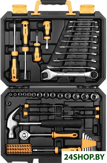 - Комплектация: - 4 шт отвертка SL6x38, 6x100, PH2x38, 2x100 мм;- 10 шт комбинированный ключ 6, 8, 10, 11, 12, 13, 14, 15, 17, 19 мм;- 1 шт соединитель 1/4 ";- 6 шт головка 1/4": 5, 6, 7, 8, 9, 10 мм;- 8 шт головка 3/8": 10, 11, 12, 13, 14, 15, 17, 19 мм;- 4 шт прецизионная отвертка SL2.4, 3.0, PH00, 0;- 1 шт молоток;- 1 шт трещотка 3/8";- 8 шт шестигранный ключ 1.5-6 мм;- 30 шт биты: SL3, 4, 5, 6, 6, PH0, 1, 2, 2, 3, PZ0, 1, 2, 2, 3, H2, 3, 4, 5, 6, S1, 2, 3, T10, 15, 20, 25, 27, 30, 35; 1 шт держатель головок.