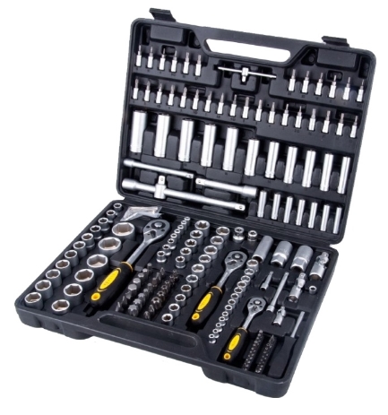 - Комплектация: - Головки 1/4": 4, 4.5, 5, 5.5, 6, 7, 8, 9, 10, 11, 12, 13, 14 мм.- Головки Торкс 1/4": Е4, 5, 6, 7, 8.- Головки удлиненные 1/4": 4, 5, 6, 7, 8, 9, 10 мм.- Удлинитель торцевых головок 1/4": 2", 4".- Выдвижной Т-образный стержень 1/4".- Держатель для бит 1/4".- Биты: Н2, 3, 4, 5, 6; FD4, 5.5, 7; РН1, 2, 3; PZ1, 2, 3; T8, 9, 10, 15, 20, 25, 27, 30; TT8, 9, 10, 15, 20, 25, 27, 30.- Головки 3/8": 10, 11, 12, 13, 14, 15, 16, 17, 18, 19 мм.- Головки Торкс 3/8": Е10, 11, 12, 14, 16, 18.- Головки удлиненные 3/8": 10, 11, 12, 13, 14, 15 мм.- Головка свечная 3/8": 21 мм.- Удлинитель торцевых головок 3/8" х 6"- Головки 1/2": 10, 11, 12, 13, 14, 15, 16, 17, 18, 19, 20, 21, 22, 24, 27, 30, 32 мм.- Головки Торкс 1/2": Е20, 24.- Головки удлиненные 1/2": 16, 17, 18, 19, 22 мм.- Головка свечная 1/2": 16, 21 мм.- Удлинитель торцевых головок 1/2": 5", 10"- Переходник для головок торцевых 1/2"- Трещотка 1/2", 1/4", 3/8".- Шарнир карданный 1/2", 1/4", 3/8".- Ключ шестигранный 1.0, 1.5, 2, 2.5, 3, 4, 5 мм.- Биты 8 мм: H7, 8, 10, 12, 14; FD8, 10, 12; PH3, 4; PZ3, 4; T40, 45, 50, 55, 60, 70; TT40, 45, 50, 55, 60, 70.- Биты с держателем 6.35 мм: Т8, 9, 10, 15, 20, 25, 30; Н3, 4, 5; ТТ8, 9, 10, 15, 20, 25, 30; SL4, 5.5, 7.- Переходник для бит 1/2", 3/8"