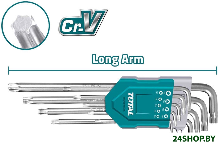 - Комплектация: Набор Torx ключей (T10, T15, T20, T25, T27, T30, T40, T45, T50) - 9 шт. Пластиковый держатель для хранения