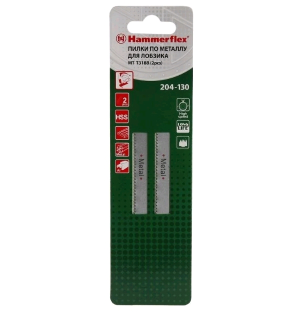 - Комплектация: Пилка для лобзика Hammer Flex 204-130 JG MT T318B тонкий металл, 110мм, шаг 2.0, HSS.