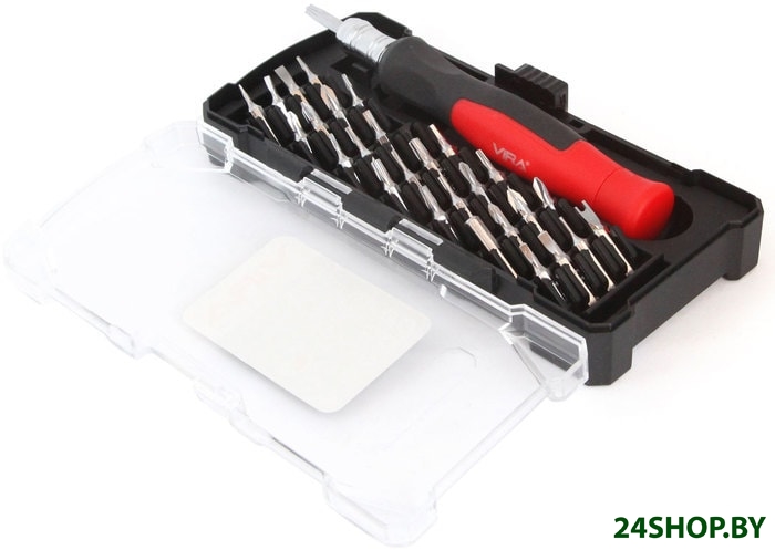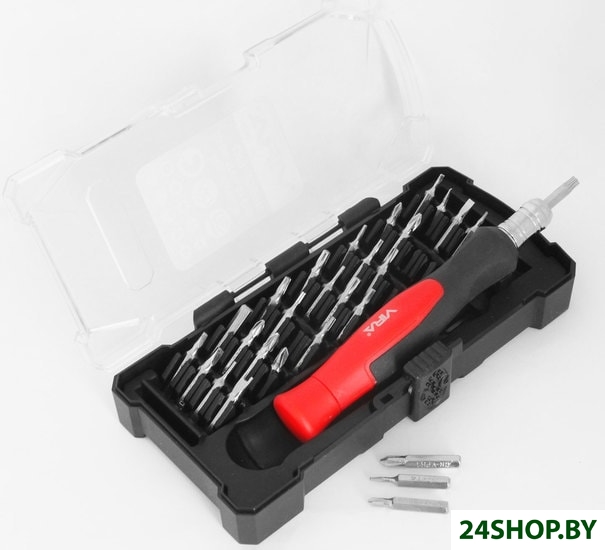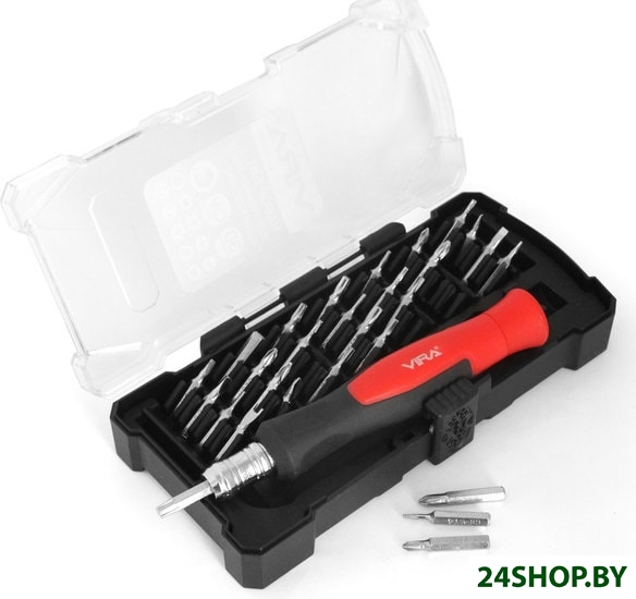 - Биты (насадки-отвертки): 28 (Torx, Phillips, Pozidriv, Slotted)