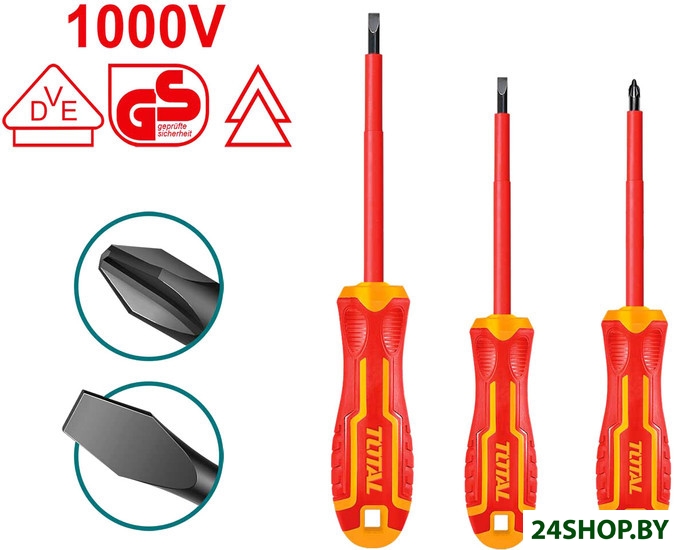 - Комплектация: Диэлектрическая отвертка PH2x100мм - 1 шт.Диэлектрическая отвертка SL4.0x100мм - 1 шт.Диэлектрическая отвертка SL5.5x125мм - 1 шт.