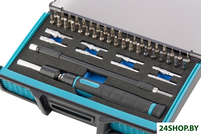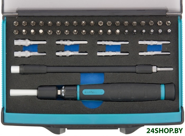 - Биты (насадки-отвертки): 38 (Hex, Torx, Phillips, Pozidriv, Slotted)
