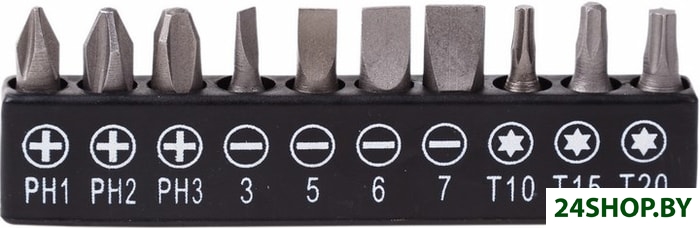 - Биты (насадки-отвертки): 10 (Torx, Phillips, Slotted)