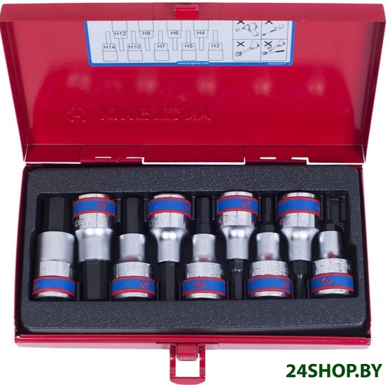 - Комплектация: Набор торцевых насадок HEX: 3, 4, 5, 6, 7, 8, 10, 12, 14 мм, L = 60 мм.