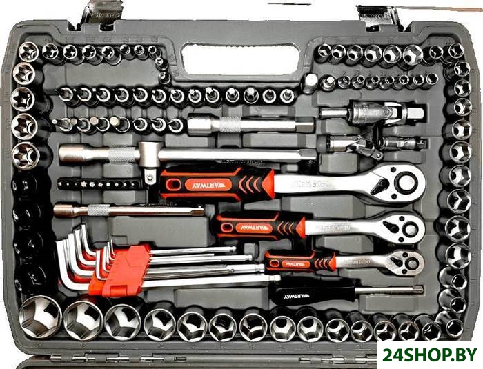 - Комплектация: Ключи комбинированные: 8-19 ммГоловки ударные из экстра твердого сплава ½: 17, 19, 21, 23Головки удлиненные 6 граней ¼: 4-9 ммГоловки удлиненные 6 граней 3/8: 10-15 ммГоловки удлиненные 6 граней ½: 10-19 ммСвечные головки 3/8: 16 и 21 ммГоловки торцевые 6 граней ¼: 4-14 ммГоловки торцевые 6 граней 3/8: 9-19 ммКлючи трещоточные: 8-10 мм, 12-13 мм, 17-19 ммГоловки торцевые 6 граней ½: 10-32 ммГоловки торцевые TORX ¼: 4-8 ммГоловки торцевые TORX 3/8: 10-18 ммГоловки торцевые TORX ½: 20-24 ммГоловки ударные ½: 17-23 ммТрещотка: 1/2, 1/4, 3/8 - 72 зубаОтвертка-держатель ¼ для битКарданы шарнирные: 1/2, 1/4, 3/8Вороток ¼Удлинитель ½: 125 и 250 ммУдлинитель ¼: 50 и 100 ммУдлинитель 3/8: 75 и 150 ммАдаптер 3 wayКлючи шестигранные Г-образные 1,5-10 ммСоединитель ¼Адаптер ¼ *3/8Адаптер ½ *3/8Биты (25 мм L): T10,15,20,25,27,30,40 PZ1,2,3Биты 3/8: PH1-2-3, PZ-1,2,3 T30,40,45,50,55. HEX:3,4,5,6,8,10. FD4- FD5,5- FD6,5