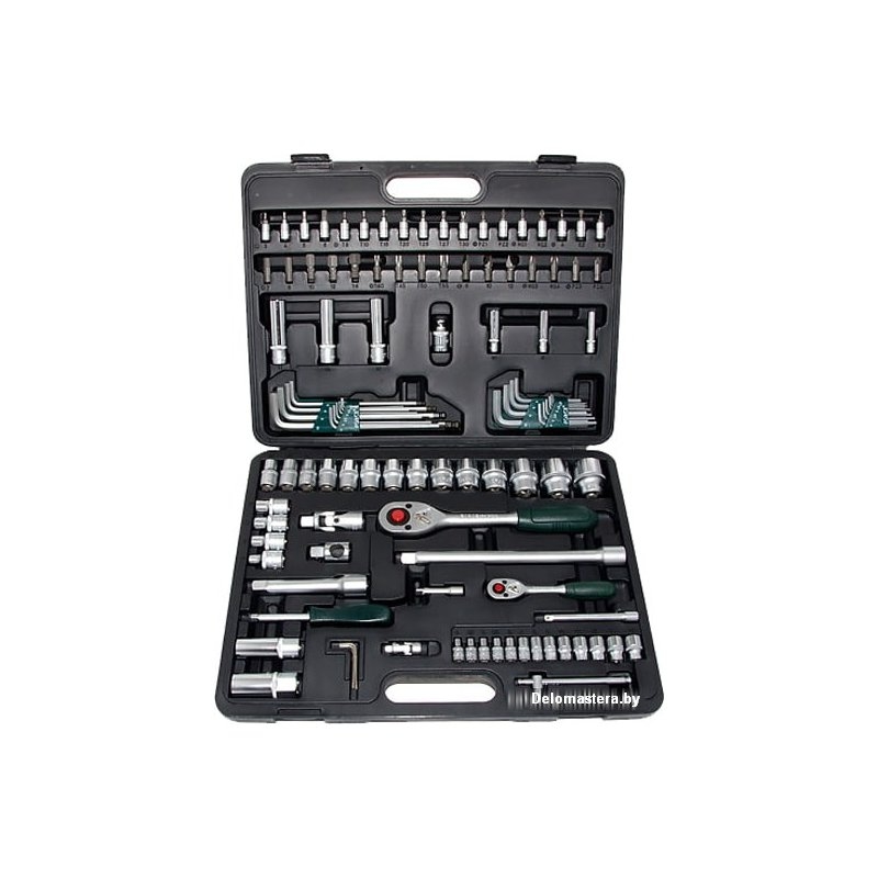 - Комплектация: Посадочный размер 1/4 дюйма:- Торцевые головки (13 шт.), размеры: 4, 4.5, 5, 5.5, 6, 7, 8, 9, 10, 11, 12, 13, 14 мм.; - Торцевые глубокие головки (3 шт.), размеры: 7, 8, 10 мм.; - Головки-биты HEX (6-гр.) (4 шт.), длина - 32 мм., размеры:3; 4; 5; 6 мм.; - Головки-биты Е-профель (Torx) (7 шт.), длина - 32 мм., размеры: T8; T10; T15; T20; T25; T27; T30.; - Головки-биты шлицевые SL (3 шт.), длина - 32 мм., размеры: 4; 5.5; 6.5 мм.; - Головки-биты крестовые Philips (2 шт.), длина - 32 мм., размеры: PH.1; PH.2; - Головки-биты крестовые Pozidriv (2 шт.), длина - 32 мм., размеры: PZ.1; PZ.2- Трещотка 24 зубца, длина - 155 мм.; - Удлинитель (2 шт.), длина - 50 мм. и 100 мм.; - Вороток Т-образный с плавающей головкой, длина - 115 мм.; - Кардан, длина - 37 мм.;- Вороток-отвертка, длина - 150 мм.Посадочный размер 1/2 дюйма:- Головка торцевая (18 шт.), размеры: 8, 10, 11, 12, 13, 14, 15, 16, 17, 18, 19, 20, 21, 22, 24, 27, 30, 32 мм.; - Торцевые глубокие головки (3 шт.), размеры: 12, 13, 17 мм.; - Трещотка 24 зубца, длина - 270 мм.; - Головка свечная (2 шт.), длина - 16 мм. и 21 мм.; - Удлинитель (2 шт.), длина - 125 мм. и 250 мм.;- Кардан, длина - 37 мм.;- Держатель биты 1/2"(F) х 5/16"(M), длина - 38 мм.;- Адаптер 3/8"(F) х 1/2"(M), длина - 46 мм. Прочее:- Ключи Г-образные НЕХ (6 гр.) (10 шт.), размеры: 1.27, 1.5, 2, 2.5, 3, 4, 5, 6, 8, 10 мм.; - Ключи Г-образные НЕХ экстрадлинный (6 гр.) (10 шт.), размеры: 1.27, 1.5, 2, 2.5, 3, 4, 5, 6, 8, 10 мм.;- Ключи Г-образные НЕХ (6 гр.) (3 шт.), размеры: 1.5, 2, 2.5 мм.;- Биты НЕХ (6-гр.) (5 шт.), посадочный размер 5/16?, длина - 32 мм., размеры: 7, 8, 10, 12, 14 мм. - Биты Torx (4 шт.), посадочный размер 5/16?, длина - 32 мм., размеры: T40; T45; T50; T55; - Биты шлицевые SL (3 шт.), посадочный размер 5/16?, длина - 32 мм., размеры: 8; 10; 12 мм.;- Биты крестовые Philips (2 шт.), посадочный размер 5/16?, длина - 32 мм., размеры: PH.3; PH.4; - Биты крестовые Pozidriv (2 шт.), посадочный размер 5/16?, длина - 32 мм., размеры PZ.3; PZ.4.