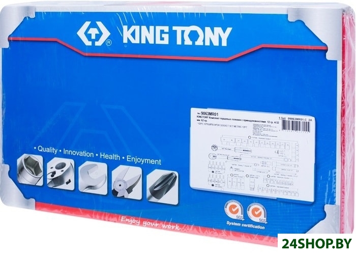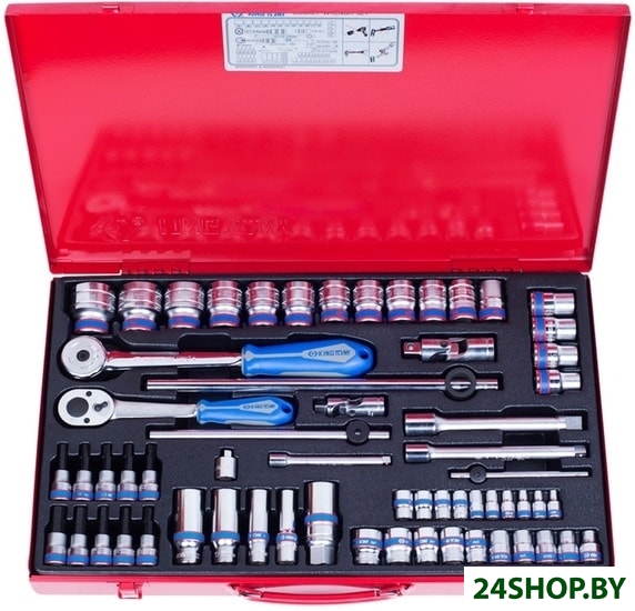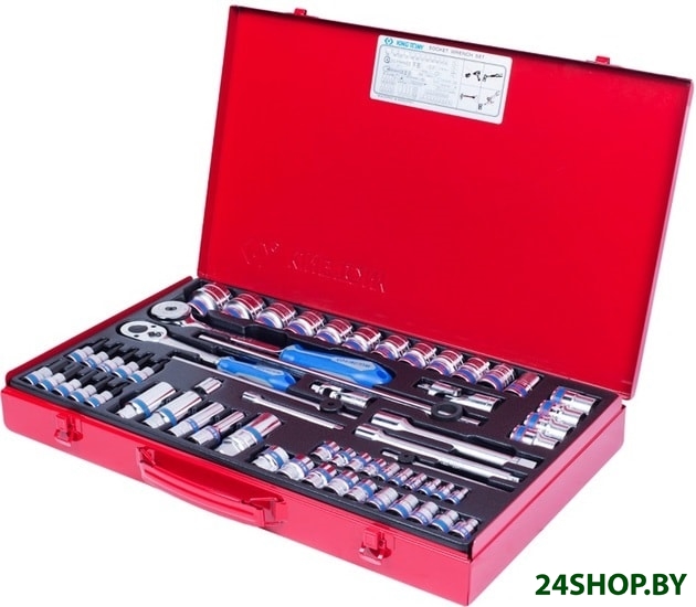 - Комплектация: • Трещотка 3/8", 200 мм, 32 зубца, флажковая, фиксатор KING TONY 3779-08G;• Трещотка 1/2", 250 мм, 72 зубца, дисковый механизм KING TONY 4755-10G;• Вороток 1/4", 115 мм, скользящий KING TONY 2571-45;• Вороток 3/8", 200 мм, скользящий KING TONY 3571-08;• Вороток 1/2", 300 мм, скользящий KING TONY 4572-12;• Кардан 3/8" KING TONY 3792;• Переходник 3/8">1/4" KING TONY 3812;• Кардан 1/2" KING TONY 4791R;• Головка свечная двенадцатигранная 3/8", 21 мм, резиновый фиксатор KING TONY 363021;• Удлинитель 1/4", 100 мм KING TONY 2221-04;• Удлинитель 3/8", 150 мм KING TONY 3221-06;• Удлинитель 1/2", 150 мм KING TONY 4251-06R;• Торцевые головки KING TONY серии 2335M, размеры: 4, 4.5, 5, 6, 7, 8, 9, 10, 11, 12 мм;• Торцевые головки KING TONY серии 3235M, размеры: 10, 13, 17, 19 мм;• Торцевые головки KING TONY серии 3330M, размеры: 8, 9, 10, 11, 12, 13, 14, 15, 17, 19 мм;• Торцевые головки KING TONY серии 4330M, размеры: 12, 13, 14, 15, 16, 17, 18, 19, 20, 21, 22, 23, 24, 27, 30, 32 мм;• Насадки (биты) торцевые 3/8", TORX, KING TONY серии 3023: T20, T25, T27, T30, T40;• Насадки (биты) торцевые 3/8", HEX, KING TONY серии 3025: 4, 5, 6, 8, 10 мм.