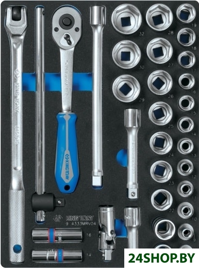 - Комплектация: Головки торцевые стандартные 6-гранные: 8, 9, 10, 11, 12, 13, 14, 15, 16, 17, 18, 19, 20, 21, 22, 23, 24, 25, 26, 27, 28, 29, 30, 32 ммГоловка свечная 12-гранная: 14 ммГоловка свечная 12-гранная: 16 ммТрещотка флажковая: 250 мм, 32 зубцаУдлинители: 75, 125, 250 ммВороток с шарниром: 380 ммВороток скользящий: 300 ммКардан: 77,5 ммГоловки торцевые стандартные6-гранные: 4, 4.5, 5, 5.5, 6, 7, 8, 9, 10, 11, 12, 13, 14 ммГоловки торцевые глубокие6-гранные: 4, 4.5, 5, 5.5, 6, 7, 8, 9, 10, 11, 12, 13, 14 ммТрещотка флажковая: 140 мм, 24 зубцаВороток, скользящий: 115 ммДержатель вставок (бит) 1/4";Отвертка-вороток: 150 ммУдлинители: 50, 100, 150 ммКардан: 36 ммЕ-стандарт (TORX): E10, E12, E14, E16, E18, E20Головки торцевые 3/8"Е-стандарт (TORX): E8, E10, E12, E14, E16, E18Насадки торцевые 3/8"HEX: H3, H4, H5, H6, H7, H8 H10, H12TORX: T15, T20, T25, T27, T30, T40, T45, T50Ключи комбинированные: 6, 7, 8, 9, 10, 11, 12, 13, 14, 15, 16, 17, 18, 19, 21, 22, 24, 27, 30, 32 ммКлючи накидные: 6x7, 8x9, 10x11, 12x13, 14x15, 16x17, 18x19, 20x22, 24x27, 30x32 ммКлючи L-образные TORX: T10, T15, T20, T25, T27,T30, T40, T45, T50Шестигранник Г-образный, с шаровым окончанием KING TONY: 1.5, 2, 2.5, 3, 4, 5, 6, 8, 10Ключ разрезной KING TONY: 8x10, 10x12, 11x13, 12x14, 17x19, 19x22Отвертка крестовая PhillipsPH2 x 38 ммPH1 x 80 ммPH2 x 100 ммPH3 x 150 ммОтвертка шлицевая Slotted3 x 75 мм4 x 100 мм5.5 x 125 мм6.5 x 150 мм8 x 175 мм6.5 x 38 ммЗахват переставной 250 ммПлоскогубцы тонконосые, мини 125 мм Зажим с фиксатором,с закругленными губками 250 ммПассатижи комбинированные: 200 ммБокорезы: 160 ммПассатижи тонконосые: 160 ммЩипцы (съемники) для стопорных колец, разжимные загнутые: 175 ммЩипцы (съемники) для стопорных колец, сжимные загнутые : 175 ммЩипцы (съемники) для стопорных колец, разжимные прямые: 188 ммЩипцы (съемники) для стопорных колец, сжимные прямые: 188 ммГоловка торцевая ударная глубокая 1/2", тонкостенная, пластиковая защита: 17, 19, 21 ммГоловка торцевая ударная шестигранная 1/2": 17, 19, 32, 34, 36 ммГоловка торцевая ударная глубокая 1/2", тонкостенная: 17, 19, 21 ммКернер: 4 x 120Выколотка: 3 x 125, 4 x 150, 5 x 165, 6 x 180Зубило: 17 x 150, 20 x 175Молоток 300 г, квадратный KING TONY 7821-30