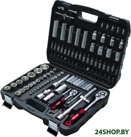 - Комплектация: головки 1/4” короткие 25 мм 4, 4.5, 5, 5.5, 6, 7, 8, 9, 10, 11, 12, 13, 14 ммголовки 1/4” глубокие 50 мм 6, 7, 8, 9, 10, 11, 12, 13 ммголовки 1/4” Е-профиль короткие 25 мм Е4, Е5, Е6, Е7, Е8головки-биты 1/4” HEX 35 мм 3, 4, 5, 6 ммголовки-биты 1/4” TORX 35 мм T8, T10, T15, T20, T25, Т27, T30головки-биты 1/4” SL 35 мм 4, 5.5, 6.5 ммголовки-биты 1/4” РН 35 мм РН.1, РН.2головки-биты 1/4” PZ 35 мм PZ.1, PZ.2трещотка 1/4” рукоятка 1/4” 150 ммвороток Т-образный 1/4” 115 ммудлинители 1/4” 50, 100 ммкардан шарнирный 1/4” биты 5/16” HEX 30 мм 5, 7, 8, 10, 12 ммбиты 5/16” TORX 30 мм T35, T40, T45, T50, T55биты 5/16” SL 30 мм 8, 10, 12 ммбиты 5/16” PH 30 мм PH.3, PH.4биты 5/16” PZ 30 мм PZ.3, PZ.4головки 1/2” короткие 38 мм 10, 11, 12, 13, 14, 15, 16, 17, 18, 19, 20, 21, 22, 24, 27, 30, 32 ммголовки 1/2" глубокие 77 мм 14, 15, 17, 19, 22 мм;головки 1/2" Е-профиль короткие 38 мм Е10, Е11, Е12, Е14, Е16, Е18, Е20, Е24головки свечные 1/2" 16, 21 ммтрещотка 1/2"удлинители 1/2" 125, 250 ммкардан шарнирный 1/2"адаптер с отверстием с 3/8"(F)*1/2"(M)битодержатель 1/2"(F)*5/16"(F)ключи Г-образные 6-гранные короткие 1.5, 2, 2.5 мм
