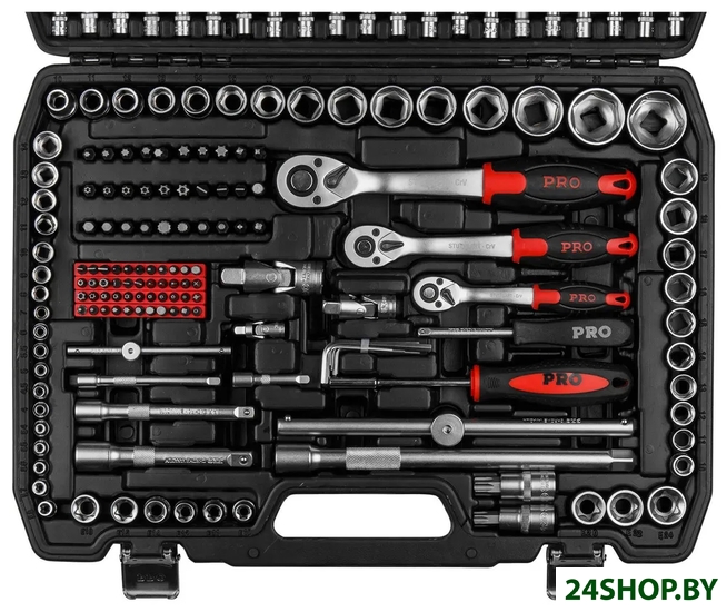 - Комплектация: Головка торцевая 1/4": 4, 4.5, 5, 5.5, 6, 7, 8, 9, 10, 11, 12, 13, 14 ммГоловка торцевая глубокая 1/4": 4, 5, 6, 7, 8, 9, 10 ммГоловка торцевая 1/4": E4, E5, E6, E7, E8Головка с насадкой HEX 1/4": H5.5, H6, H6.5, H7, H8Головка с насадкой TORX 1/4": T25, T27, T30, T34, T40(x2), T45, T50Головка с насадкой TAMPER TORX 1/4": TT27, TT30, TT35, TT40, TT45, TT50Головка с насадкой SL 1/4": SL6, SL6.5, SL8Головка с насадкой PH 1/4": PH3, PH4Головка с насадкой PZ 1/4": PZ3, PZ4Головка с насадкой M 1/4": M5, M6, M8, M10Головка торцевая 3/8": 10, 11, 12, 13, 14, 15,16, 17, 18, 19 ммГоловка торцевая глубокая 3/8": 10, 11, 12, 13, 14, 15 ммГоловка торцевая 3/8": E10, E11, E12, E14, E16, E18Свечная головка 3/8": 18 ммГоловка торцевая 1/2": 10, 11, 12, 13, 14, 15, 16, 17, 18, 19, 20, 21, 22, 24, 27, 30, 32 ммГоловка торцевая глубокая 1/2": 16, 17, 18, 19, 22 ммГоловка торцевая 1/2": E20, E22, E24Головка с насадкой TORX 1/2": T55, T60Свечная головка 1/2": 16, 21 ммНасадка 1/4" HEX: H3, H4, H5, H6Насадка 1/4" TAMPER HEX: HH3, HH4, HH5, HH6Насадка 1/4" TORX: T8, T10, T15, T20, T25Насадка 1/4" TAMPER TORX: TT8, TT10(x2), TT15(x2), TT20(x2), TT25(x2), TT40Насадка 1/4" SL: SL4, SL5.5, SL6Насадка 1/4" PH: PH1, PH2Насадка 1/4" PZ: PZ1, PZ2Насадка 1/4" U: U4, U6, U8Насадка 1/4" SQ: SQ1, SQ2Насадка 1/4" TW: TW1, TW2, TW3Насадка 1/4" TS: TW6, TW8, TW10Насадка 5/16" HEX: H5.5, H6, H6.5, H7, H8Насадка 5/16" TORX: T25, T27, T30, T35, T40(x2), T45, T50Насадка 5/16" TAMPER TORX: TT27, TT30, TT35, TT40, TT45, TT50Насадка 5/16" SL: SL6, SL6.5, SL8Насадка 5/16" PH: PH3, PH4Насадка 5/16" PZ: PZ3, PZ4Трещотка 1/4"Переходник (держатель для бит) 1/4"х1/4"(HEX)Удлинитель 1/4" 50 ммУдлинитель 1/4" 100 ммКардан 1/4"Вороток-отвертка 1/4" 150 ммВороток 1/4" с плавающей головкой 115 ммТрещотка 3/8"Переходник (держатель для бит) 3/8"х5/16"(HEX)Удлинитель 3/8" 125 ммКардан 3/8"Трещотка 1/2"Переходник (держатель для бит) 1/2"х5/16"(HEX)Переходник 3/8"(F)х1/2"(М) с отверстиемУдлинитель 1/2" 125 ммУдлинитель 1/2" 250 ммКардан 1/2"Вороток 1/2"с плавающей головкой 250 ммКлюч комбинированный: 8, 10, 11, 12, 13, 14, 15, 16, 17, 18, 19, 22 ммКлюч шестигранный Г-обр.: 1.27, 1.5, 2, 2.5, 3, 4, 5 ммКейс