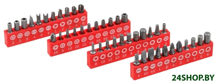 - Биты (насадки-отвертки): (Hex, Torx, Spline, Phillips, Pozidriv, Slotted, Tri-Wing, Spanner, Square)