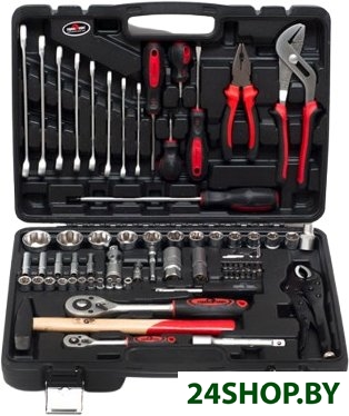 - Комплектация: Посадочный размер 1/4”:Биты — это насадки, которые используются для работы с винтами и болтами разных форм и размеров.Биты шестигранные (HEX): 3, 4, 5, 6 мм. Используются для затягивания и откручивания шестигранных крепежных элементов.Биты с внешней звездой TORX: T10, T15, T20, T25, T27, T30, T40. Идеально подходят для работы с внешними звездообразными винтами.Биты PHILLIPS: PH1, PH2, PH3. Предназначены для работы с крепежом типа Phillips.Держатель для бит 1/4" — это приспособление, которое используется для удобного хранения и организации бит. Он позволяет легко находить нужную насадку и не терять ее.Вороток-отвертка 150 мм подходит для торцевых головок с присоединительным квадратом 1/4”. Небольшие размеры отвертки позволяют использовать ее в условиях ограниченного пространства.Головки (6 граней) 1/4" - размеры: 4, 5, 6, 7, 8, 9, 10, 11, 12 и 13 мм, которые подходят для работы с гайками и болтами различных диаметров. Они имеют шестигранный профиль, который обеспечивает крепкое и надежное соединение с крепежом.Глубокие головки (6 граней) 1/4" – размеры: 5, 6, 7, 8и 9 мм – предназначены для работы с крепежом, когда гайка закручена глубоко и длины обычной головки не хватает, особенно незаменимы, если к тому же не подлезть ключом к гайке.Удлинитель 75 мм 1/4" — это приспособление, которое используется для увеличения длины воротка или головки. Удлинитель обеспечивает дополнительную длину для работы в труднодоступных местах и увеличивает рабочий радиус.Посадочный размер 1/2":Головки (6 граней) 1/2" - размеры: 10, 11, 12, 13, 14, 15, 17, 19, 22, 24, 27, 30 и 32 мм, которые подходят для работы с гайками и болтами различных диаметров. Они имеют шестигранный профиль, который обеспечивает крепкое и надежное соединение с крепежом.Головки свечные (6 граней) 1/2" – размеры: 16 и 21 мм, которые позволяют легко и безопасно заменять свечи зажигания в автомобиле.Удлинитель 125 мм 1/2" — это приспособление, которое используется для увеличения длины воротка или головки. Удлинитель обеспечивает дополнительную длину для работы в труднодоступных местах и увеличивает рабочий радиус.Остальные предметы:Кардан 1/2" и 1/4" – приспособление для воротка, которое обеспечивает гибкость и позволяет работать под разными углами, упрощая доступ к труднодоступным местам.Трещотка 1/2" и 1/4" – это инструмент, который ускоряет и облегчает процесс работы с крепежом, позволяет изменить направления вращения и регулировать размер используемой головки.Ключ переставной (захват трубный) 250 мм – это универсальный инструмент, который предназначен для фиксации, отворачивания/заворачивания крепежей, не имеющих специального рабочего профиля, а также используются в качестве трубного или разводного ключа.Комбинированные ключи – размеры: 10, 11, 12, 13, 14, 15, 17 и 19мм - это инструменты, которые состоят из двух частей: одна часть имеет шестигранный профиль, а другая - рожковый. Комбинированные ключи подходят для работы с гайками и болтами разных размеров.Слесарный молоток немецкого типа 300 гр. – это надежный и качественный инструмент, предназначенный для клепальных и столярно-слесарных работ, где требуется ударная сила. Молоток изготовлен по немецкому стандарту DIN 1041. Рабочая часть молотка выполнена из штампованной инструментальной стали марки 45. Рукоятка молотка сделана из качественной древесины и обработана специальным лаком.Отвертки – размеры: 8x200 мм (+), 6x100 мм 