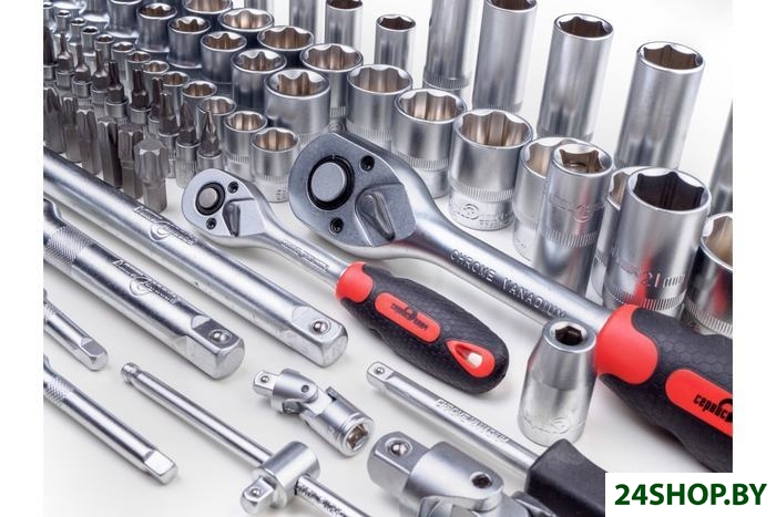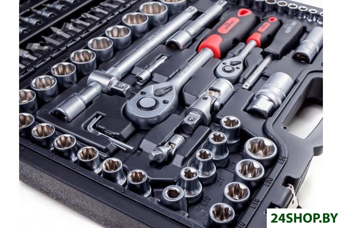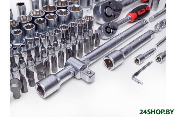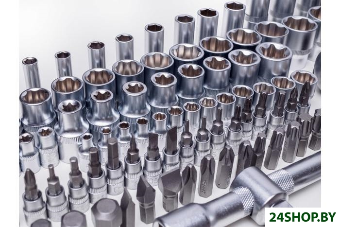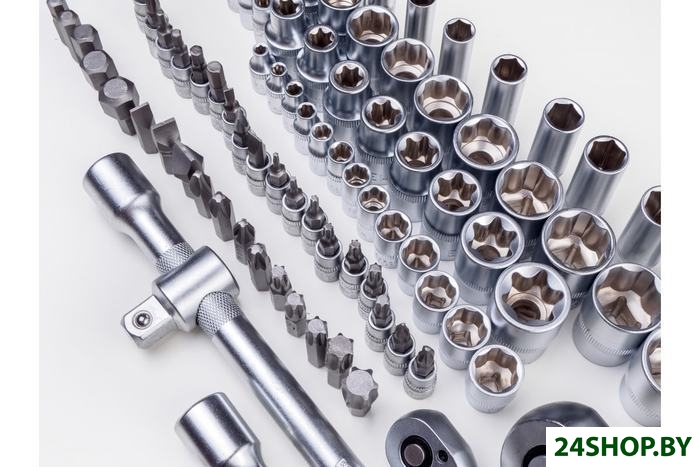 - Комплектация: 13 торцевых шестигранных головок 1/4": 4, 4.5, 5, 5.5, 6, 7, 8, 9, 10, 11, 12, 13, 14 мм8 длинных головок (50 мм) 1/4": 6, 7, 8, 9, 10, 11, 12, 13 мм5 головок E-star 1/4": Е4, Е5, Е6, Е7, Е818 бит 1/4": 3 плоские биты: 4, 5.5, 6.5, 2 биты PHILIPS: PH1, PH2, 2 биты POZI: PZ1, PZ2, 4 шестигранные биты: 3, 4, 5, 6 мм, 7 бит TORX: Т8, Т10, Т15, Т20, Т25, Т27, Т30Трещотка с быстрым сбросом 1/4"Удлинители 1/4": 50, 100 ммОтвертка-битодержатель 1/4"Карданный шарнир 1/4"Вороток Т-образный 1/4"3 шестигранных ключа: 1.5, 2, 2.5 мм17 торцевых шестигранных головок 1/2": 10, 11, 12, 13, 14, 15, 16, 17, 18, 19, 20, 21, 22, 24, 27, 30, 32 мм5 длинных головок (75 мм) 1/2": 14, 15, 17, 19, 22 мм8 головок E-star 1/2": Е10, Е11, Е12, Е14, Е16, Е18, Е20, Е22Адаптер для бит 1/2" на 5/16"17 бит 5/16": 5 шестигранных бит: 7, 8, 10, 12, 14 мм, 3 плоские биты: 8, 10, 12 мм, 2 биты PHILIPS: PH3, PH4, 5 бит TORX: Т40, Т45, Т50, Т55, Т60, 2 биты POZI: PZ3, PZ4Трещотка с быстрым сбросом 1/2"Удлинители 1/2": 125, 250 ммВороток Т-образный 1/2"Карданный шарнир 1/2"Свечные головки 1/2": 16, 21 ммКейс.