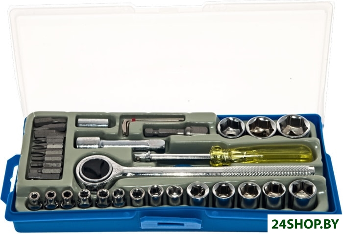 - Комплектация: Головки шестигранные 1/4"": 4. 4.5. 5. 5.5. 6. 6.5. 7. 8. 9 мм Головки шестигранные 3/8"": 10. 11. 12. 13. 14. 16. 17. 19 мм Ключ трещоточный 3/8"" Маховик для трещоточного ключа Отвертка-адаптер для головок 1/4"" Шестигранные ключи: 1.5. 2.0. 2.5 мм Удлинитель 3/8"" 75 мм Атаптер для бит 1/4"" Адаптер для головок 3/8"" 50 мм Адаптер для головок 1/4"" 25 мм Биты: PH1. PH2. PH3. SL4. SL6. SL7.HEX3. HEX4. HEX5 Адаптер для головок.