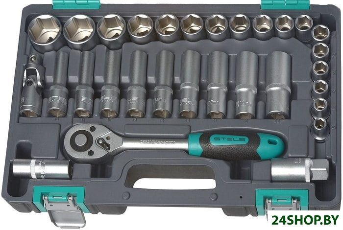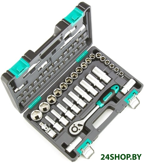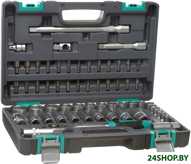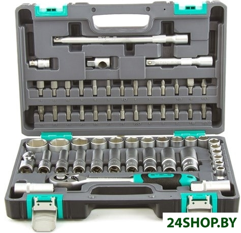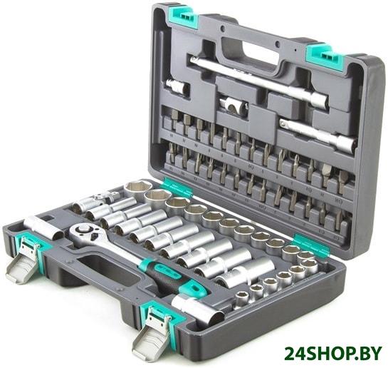 - Комплектация: - Ключ трещоточный 1/2.- Головки торцевые 1/2: 10; 11; 12; 13; 14; 15, 16; 17; 18; 19; 20; 21; 22; 24; 27; 30; 32.- Головки торцевые, свечные 1/2: 16, 21.- Головки торцевые, удлиненные, 1/2: 10; 11; 12; 13; 14; 15; 17; 19; 22.- Кардан 1/2.- Удлинители 1/2: 125 мм, 250 мм.- Переходник для воротка 3/8 - 1/2.- Переходник для бит: из 1/2 в 5/16.- Биты-вставки 5/16: Н 4; 5; 6; 8; 10; 12; 14, SL 8-10-12, PH 1-2-3-4, PZ 1-2-3-4, T 20-25-27-30-40-45-50-55.