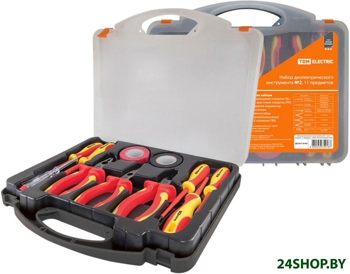 - Комплектация: - Две шлицевые отвертки: SL3x100 и SL5,5x125 мм- Три крестовые отвертки: PH0x60, PH1x80 и PH2x100 мм- Отвертка-индикатор- Пассатижи 160 мм- Бокорезы (кусачки) 160 мм- Длинногубцы 160 мм- Две изоленты ПВХ 0,13 мм х 18 мм х 9 м