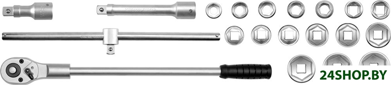 - Комплектация: - Головки 3/4": 19, 21, 22, 24 mm, L= 50 mm; 26, 27, 28 mm, L= 52 mm; 30, 32 mm, L= 53 mm; 33, 34 mm, L= 56 mm; 36 mm, L = 58 mm; 38 mm, L= 60 mm; 41 mm, L= 64 mm; 46 mm, L= 68 mm; 50mm, L= 72 mm- Трещотка 3/4", L = 500 mm- Т-образный вороток 3/4", L= 510 mm- Удлинители 3/4", L= 100 mm, 200 mm