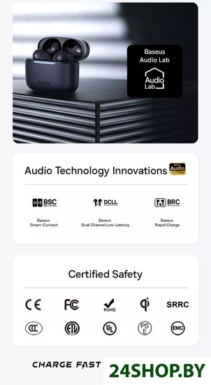 - Быстрая зарядка: 10 минут подзарядки - 2 часа воспроизведения
