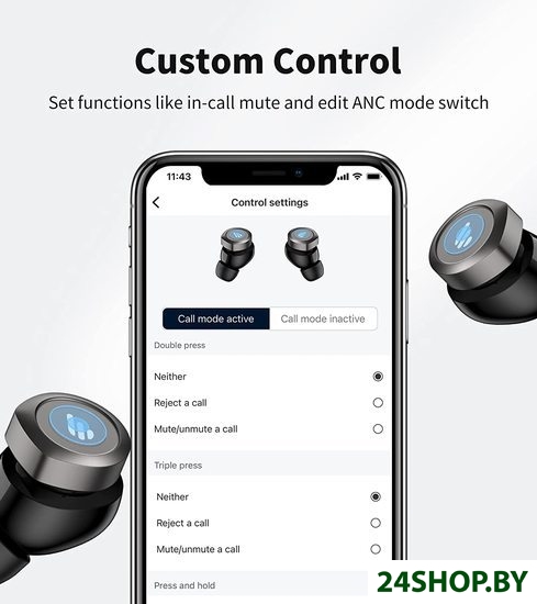 - Функции управления звуком: активация шумоподавления, активация голосового помощника, прослушивание окружающего звука