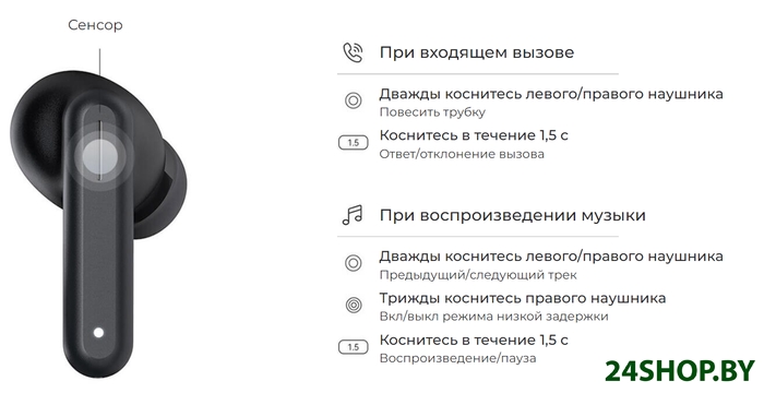 - Управление наушниками: сенсорное