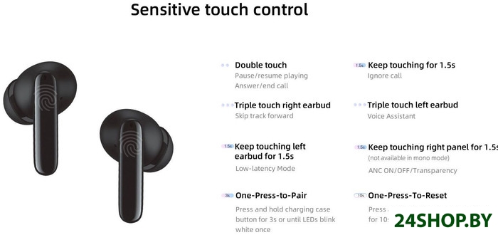 - Функции управления: активация шумоподавления, прослушивание окружающего звука